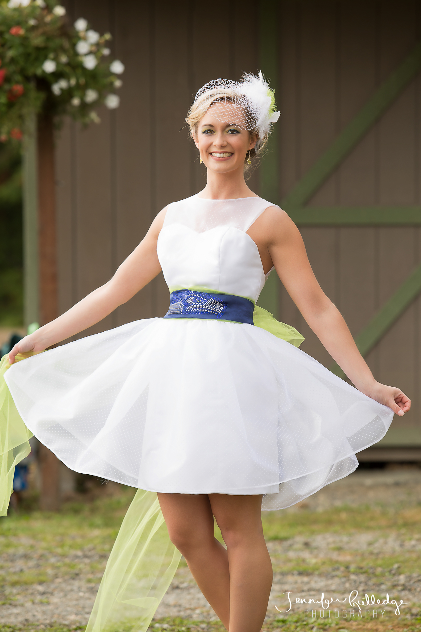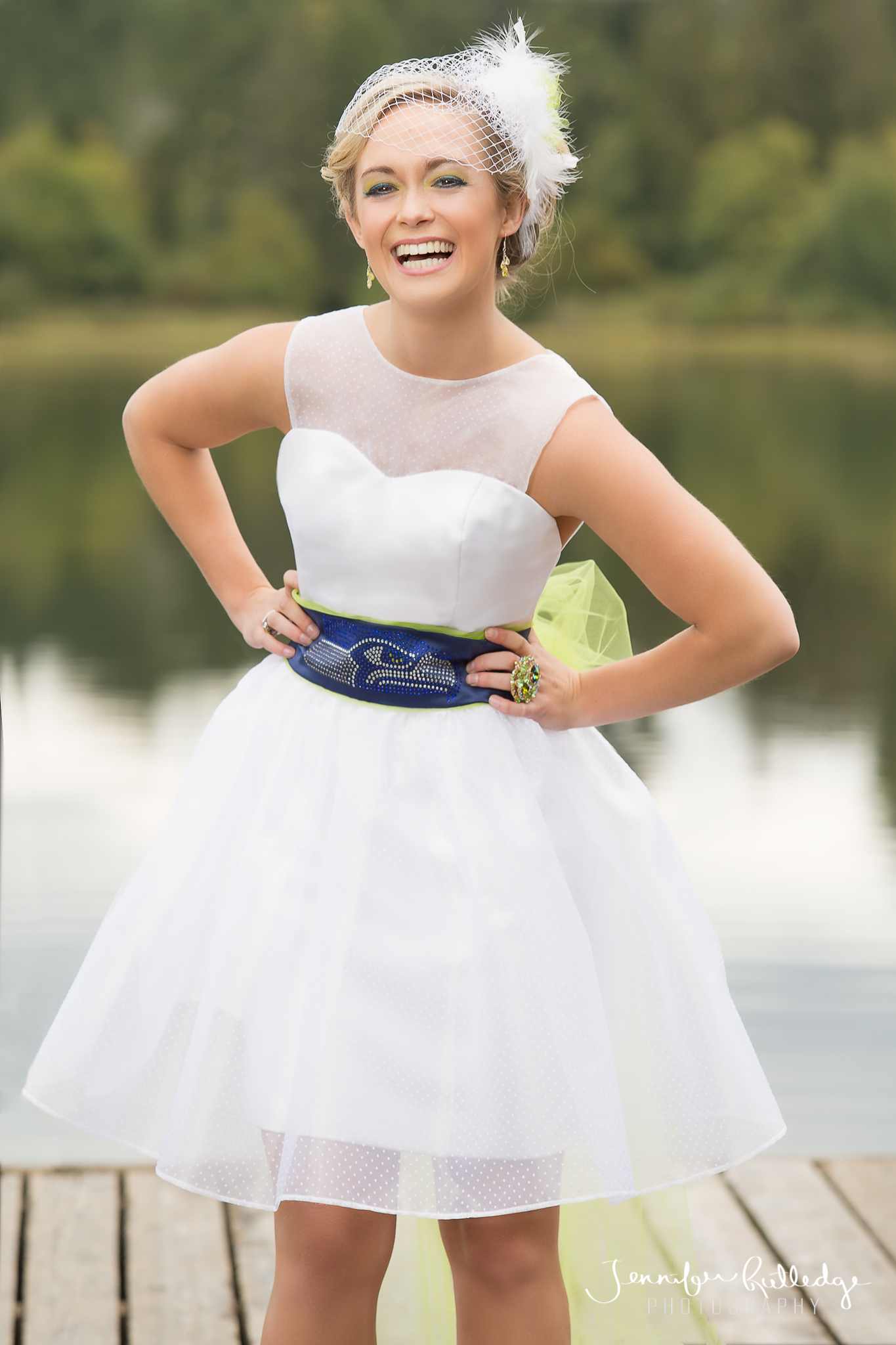 Their latest creation pays homage to Superbowl XLVIII Champions Seattle Seahawks. This dress is perfect for the football-loving 12th Man & Wife! We shot this, on location in Shelton, WA on a typical Northwest day, cloudy with the occasional downpour! The images are featured in the current edition of South Sound Wedding & Event Magazine.